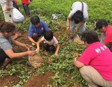 第二、2个人直线向前刨花生,2个人捡花生送到摘花生处,2个人在指定处摘花生装袋子。